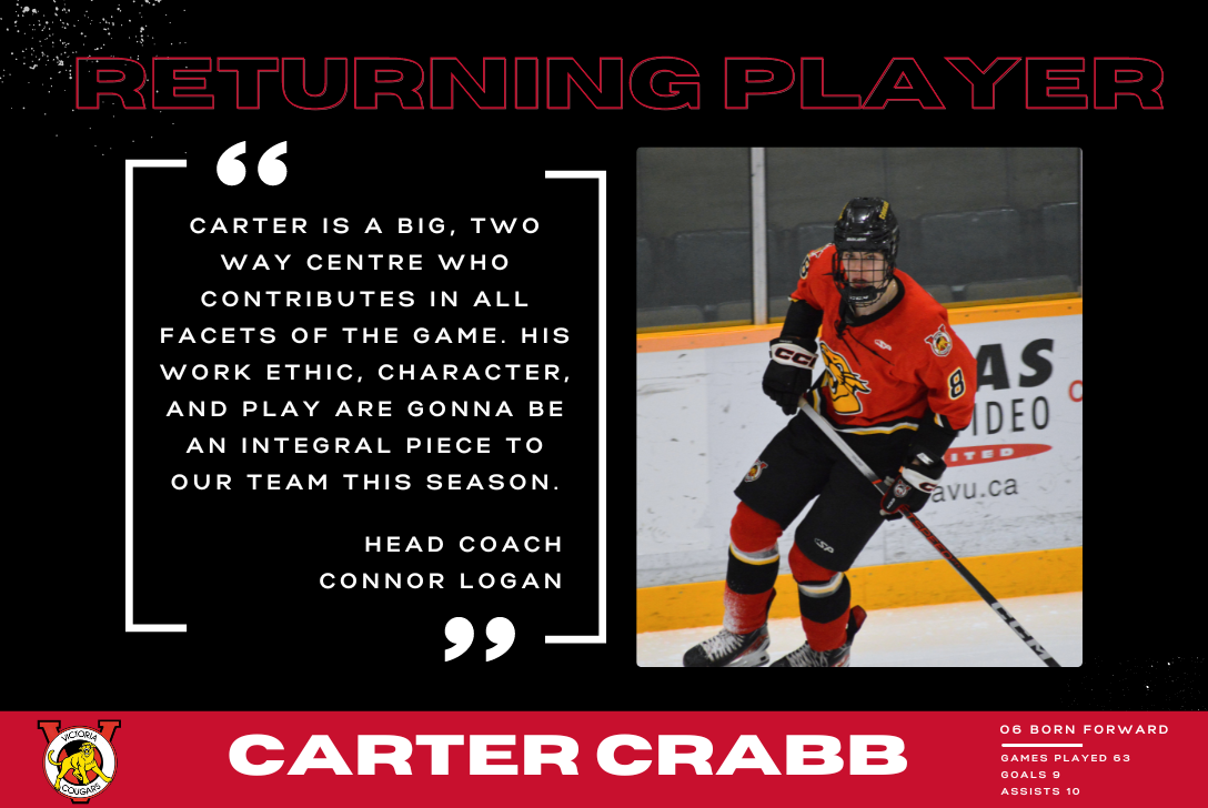 We are excited to announce that Carter Crabb will be returning to the Cougars! We look forward to having his talent on the ice this season!